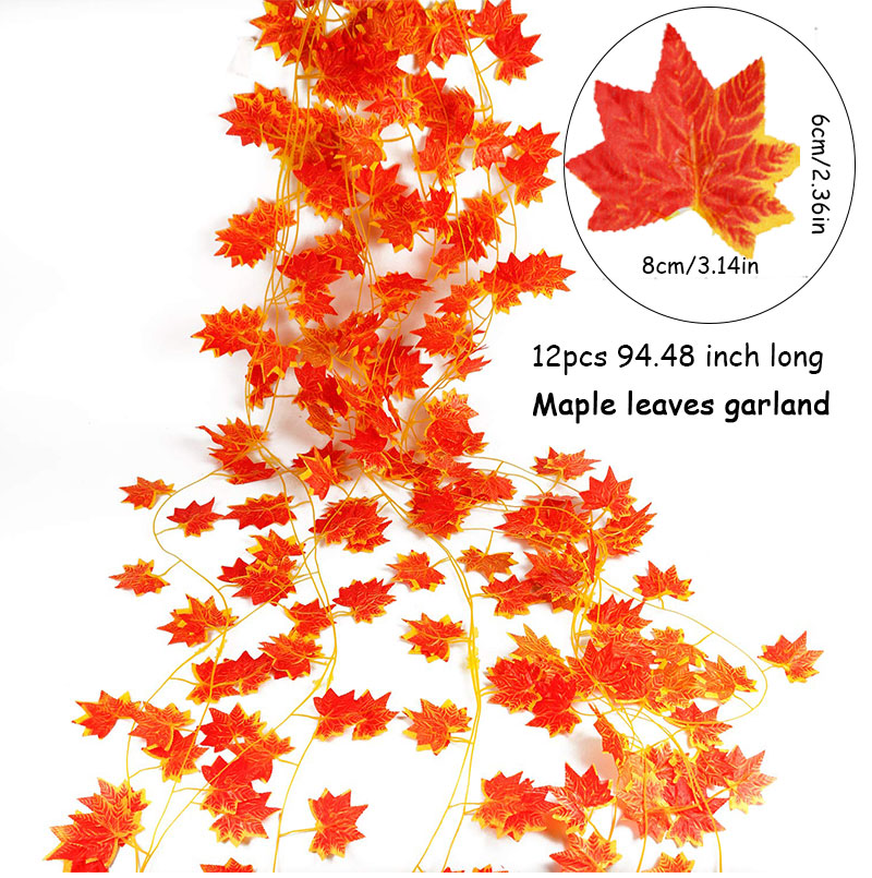 12Pcs Autumn Maple Leaf Vines for Festive Decorations