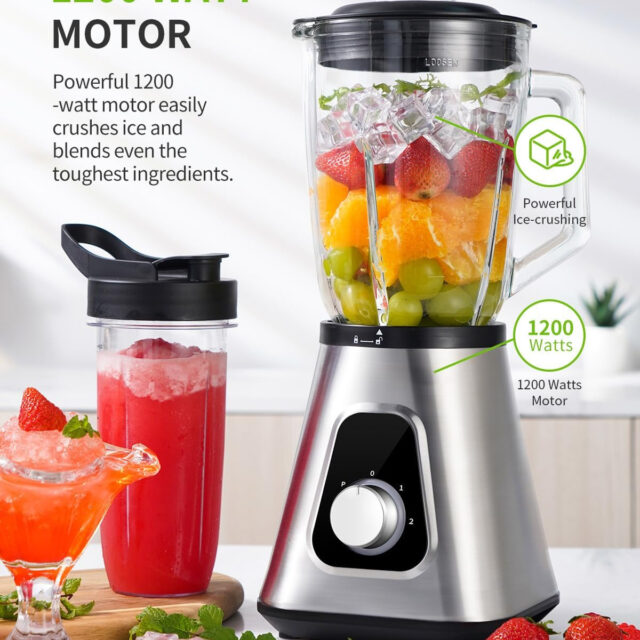 This 2-in-1 blender combo gives you the flexibility to blend and go or make large batches with ease. The 1300W motor effortlessly handles frozen fruits, vegetables, and ice, while the durable 6-blade system ensures a silky finish in every blend. Whether you’re prepping shakes, sauces, or even baby food, this machine can do it all. The variable speed settings and pulse function let you control the texture, whether you’re going for a smooth purée or a chunky salsa.