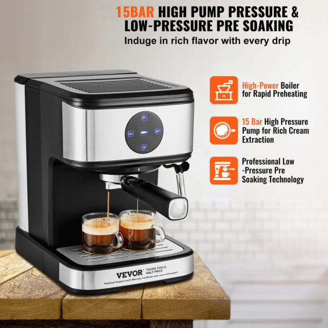 Why settle for ordinary coffee when you can enjoy a rich, expertly brewed espresso from the comfort of your home? This espresso machine is the perfect choice for those who want to enjoy café-quality drinks every day. Its powerful 15-bar pump, milk frother steam wand, and semi-automatic features provide the tools you need to make your coffee routine more exciting. Whether you’re making a quick espresso shot in the morning or a frothy cappuccino in the afternoon, this machine is ready to deliver exceptional results. Start your journey to becoming your own home barista today!
