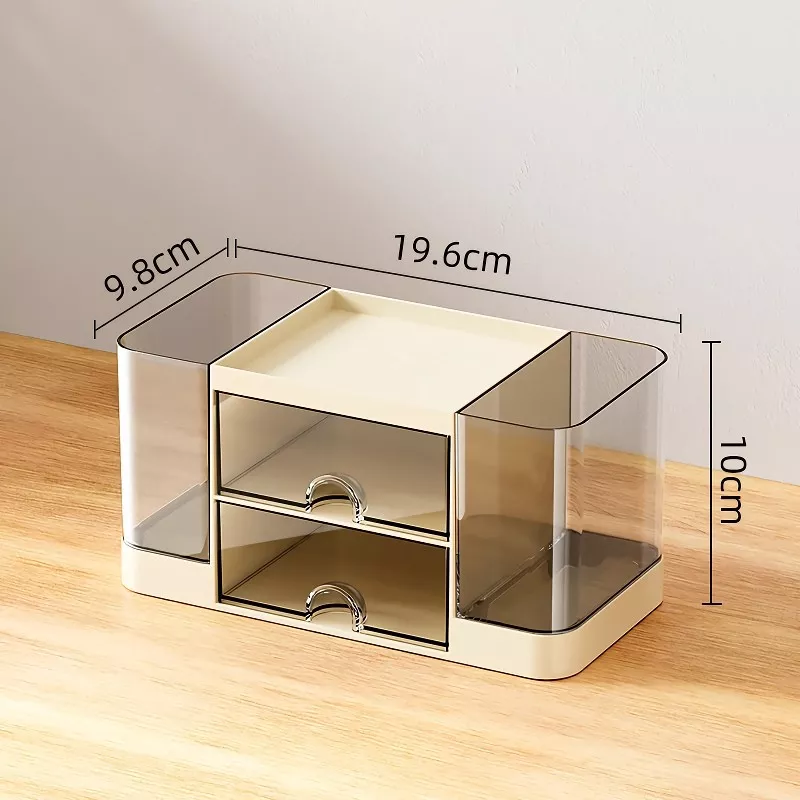 Crafted to keep your essentials in place, this organizer combines function and design to give you a clutter-free space. With two spacious pull-out drawers and a top compartment to hold pens, pencils, brushes, or tools, this storage box easily fits on any desktop, vanity, or counter. Whether you’re working from home, studying for school, or organizing your makeup, this compact storage solution keeps everything right where you need it.