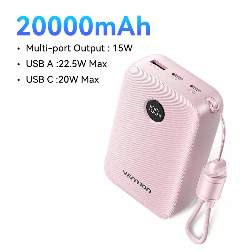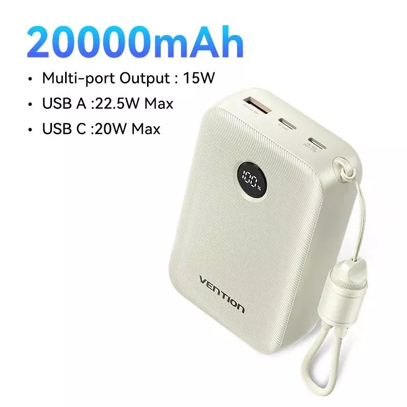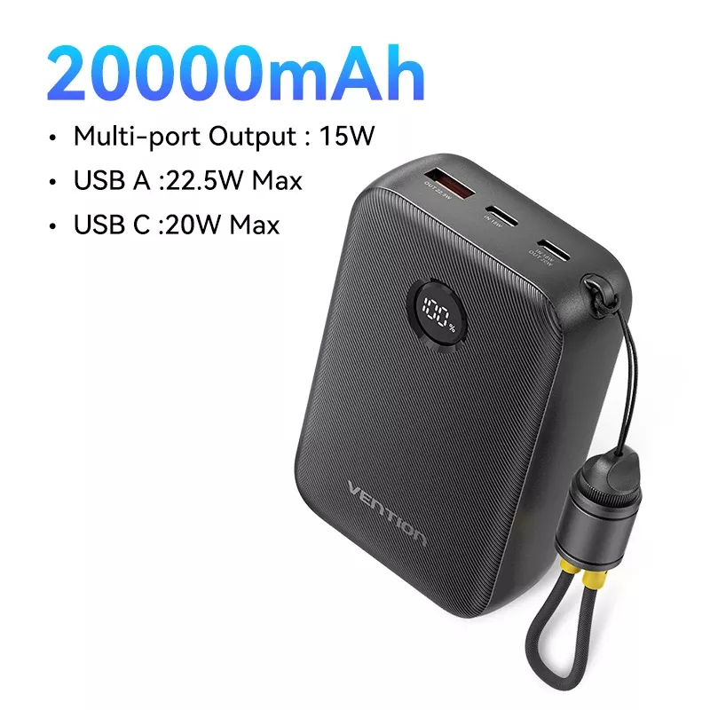 This power bank is more than just a portable charger—it’s a lifesaver when you’re on the go. Its large 20000mAh capacity means you can charge your smartphone, tablet, or other devices multiple times before needing to recharge the power bank itself. The built-in USB-C cable simplifies your experience, eliminating the hassle of tangled cords. Plus, the two-way quick charge technology lets you both charge your devices faster and recharge the power bank with speed.