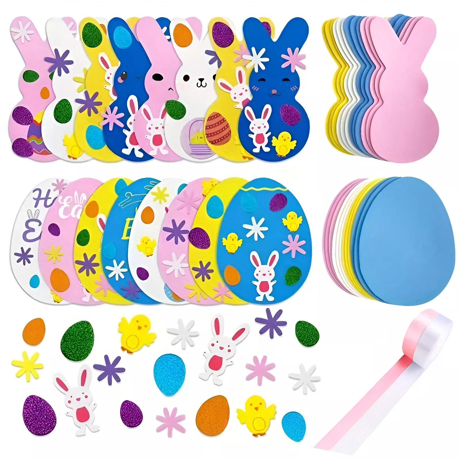 • 16 Easter bunny foam stickers (4 of each color)