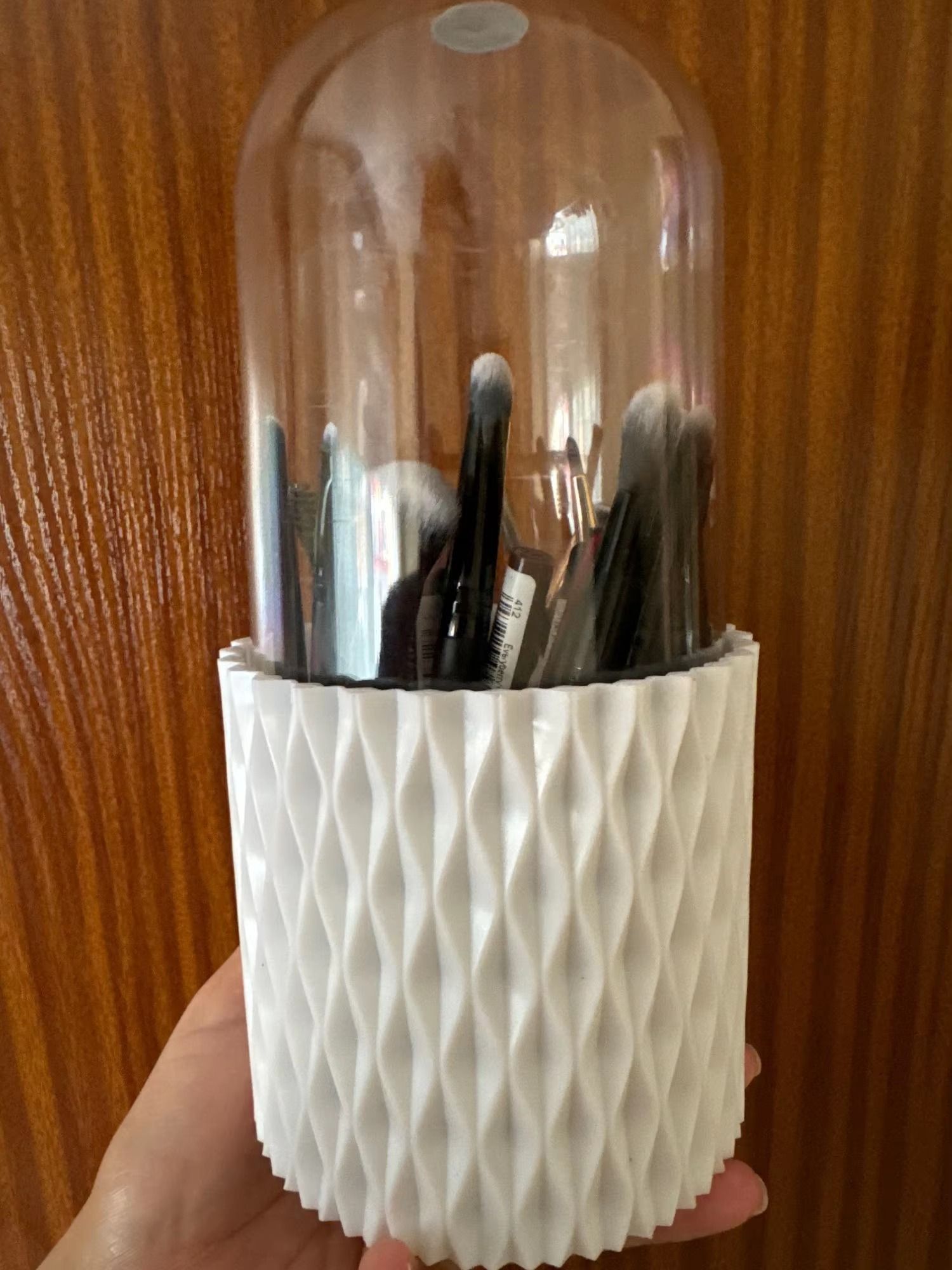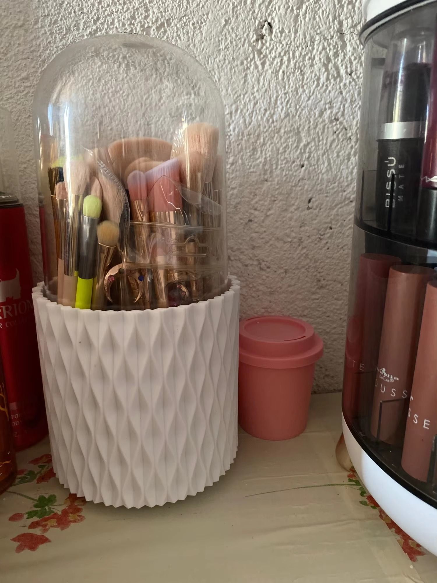 Crafted from high-quality PE material, this makeup brush holder is durable and easy to clean. The 360° rotating feature allows you to effortlessly access all your beauty essentials, while the lid keeps your items dust-free and protected. Whether you’re at home or on the go, this portable organizer ensures that your makeup tools are always within reach and neatly stored.