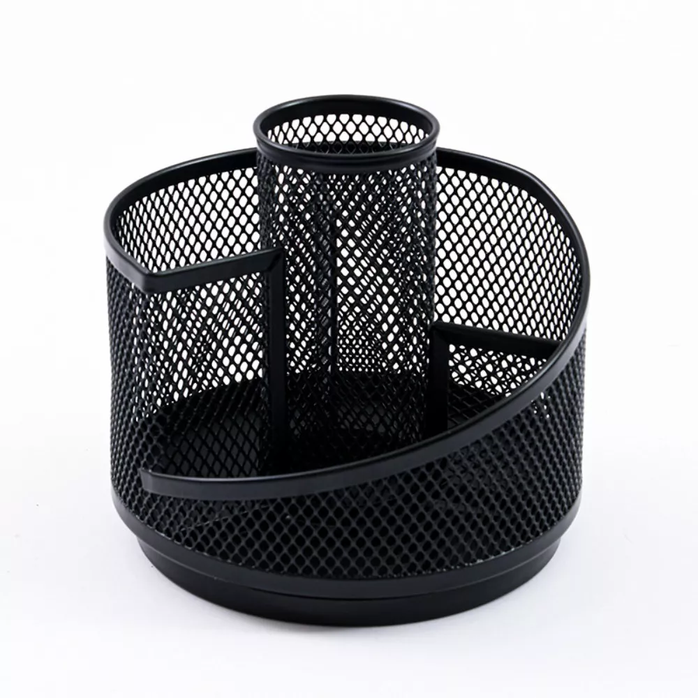 Upgrade your desktop with this 360-degree rotating metal mesh organizer, the perfect solution for keeping your pens, makeup brushes, and office tools neat and within easy reach. Made from high-quality metal in a classic black finish, this stylish holder adds a modern touch to your workspace or vanity while offering functionality you’ll love.