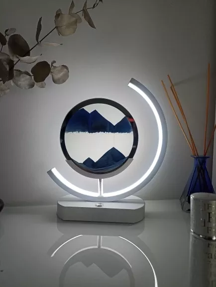 i wasn’t expecting to love this as much as i do, but it’s quickly become one of my favorite things in the house. the sand falls so slowly, creating these intricate, ever-changing patterns that are incredibly soothing to watch. i’ve placed it on my nightstand, and it’s been perfect for winding down before bed. the light is soft, just the right brightness for creating a calming atmosphere without being too harsh. i’ve also used it in my living room as a conversation piece, and it’s always a hit with guests. what i love most is how versatile it is. i can move it around the house depending on my mood, and it always fits in perfectly. it’s also lightweight, so it’s easy to move. overall, this has been a great addition to my home, and i’m really happy with it. if you’re looking for something unique and calming, this is definitely worth it!