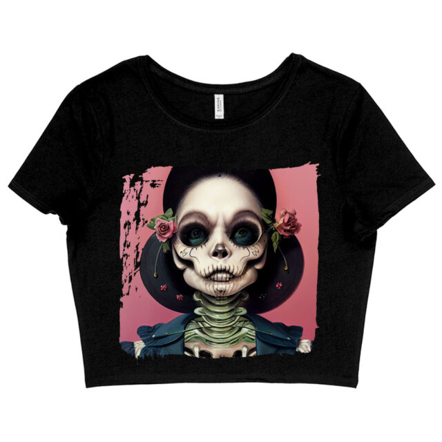3D Skull Women’s Cropped T-Shirt – Skeleton Crop Top – Halloween Themed Crop Tee Shirt