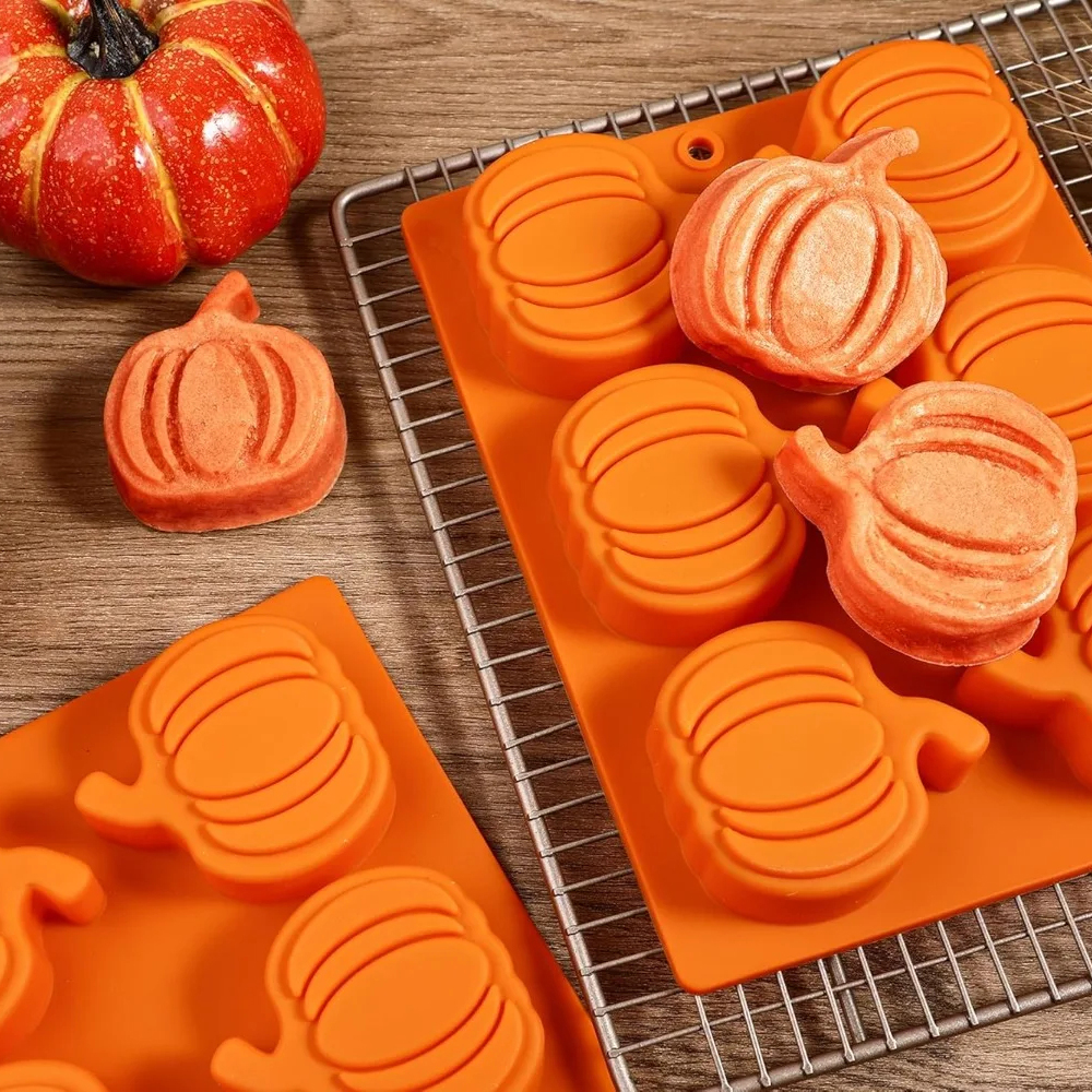 Each mold includes 6 detailed pumpkin-shaped cavities, ideal for baking mini cupcakes, muffins, chocolates, candies, ice cubes, soaps, and more. The smooth interior ensures your creations come out with perfect detail, making them a hit at family dinners, autumn parties, and festive celebrations. Let your imagination run wild — from delightful confections to charming handmade soaps, these molds make every project fun and rewarding.
