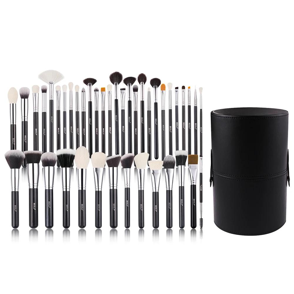 Crafted with 100% natural goat hair, pony hair, nano fiber, and synthetic bristles, each brush feels luxuriously soft on the skin while providing precision control. Complete with a sleek black holder, it keeps your tools organized, travel-ready, and always within reach.