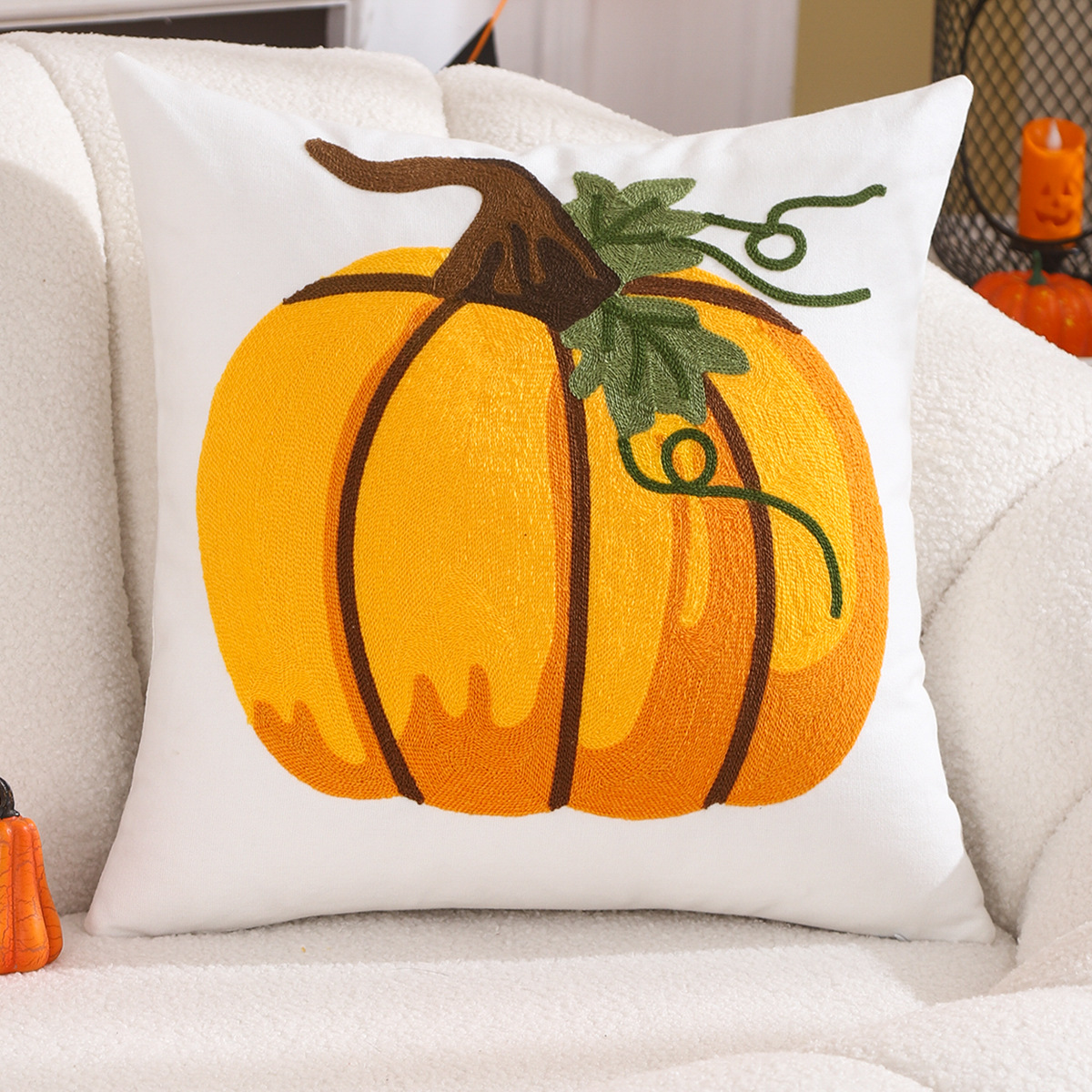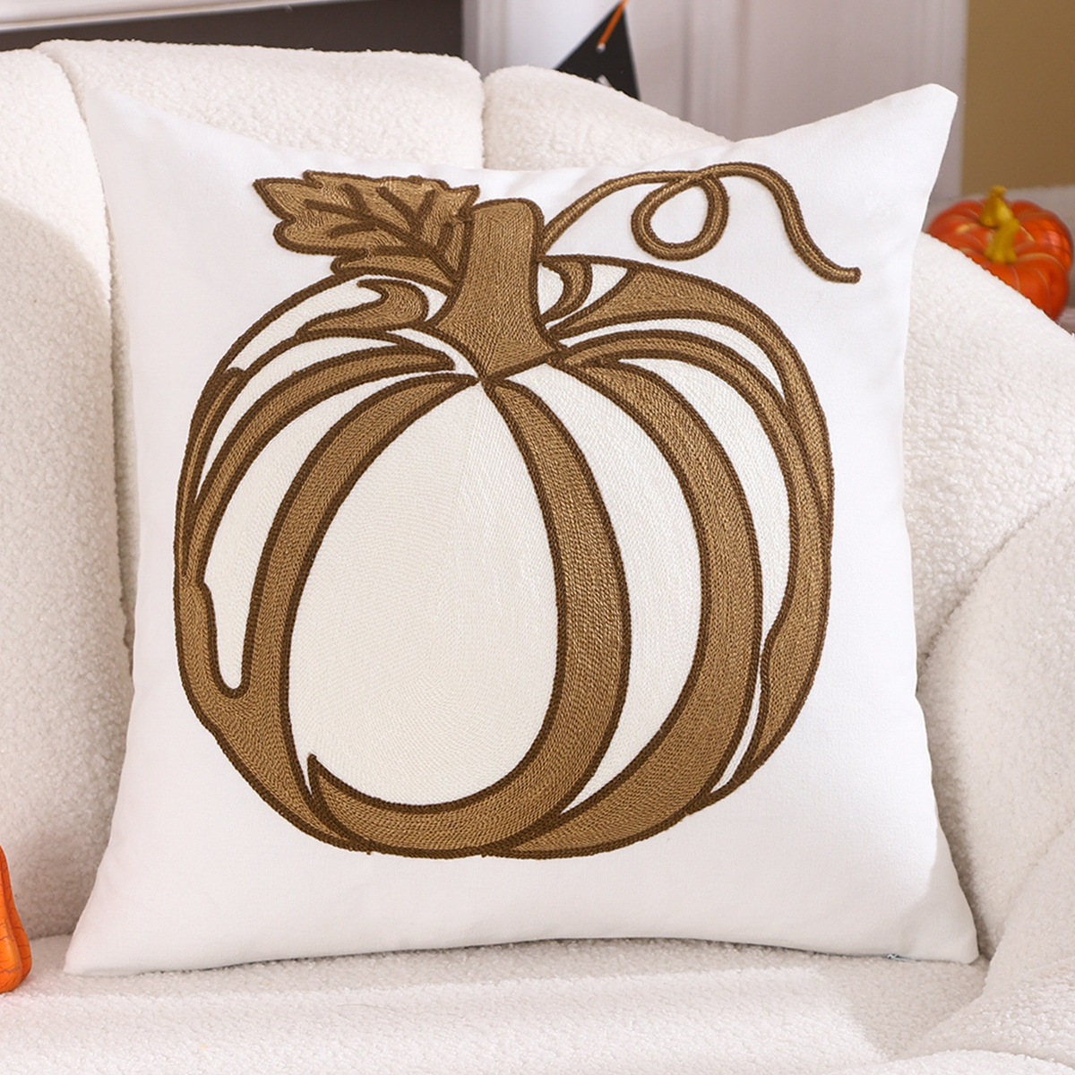 45x45cm Pumpkin Embroidered Cotton Pillow Cover – Cozy Fall Décor