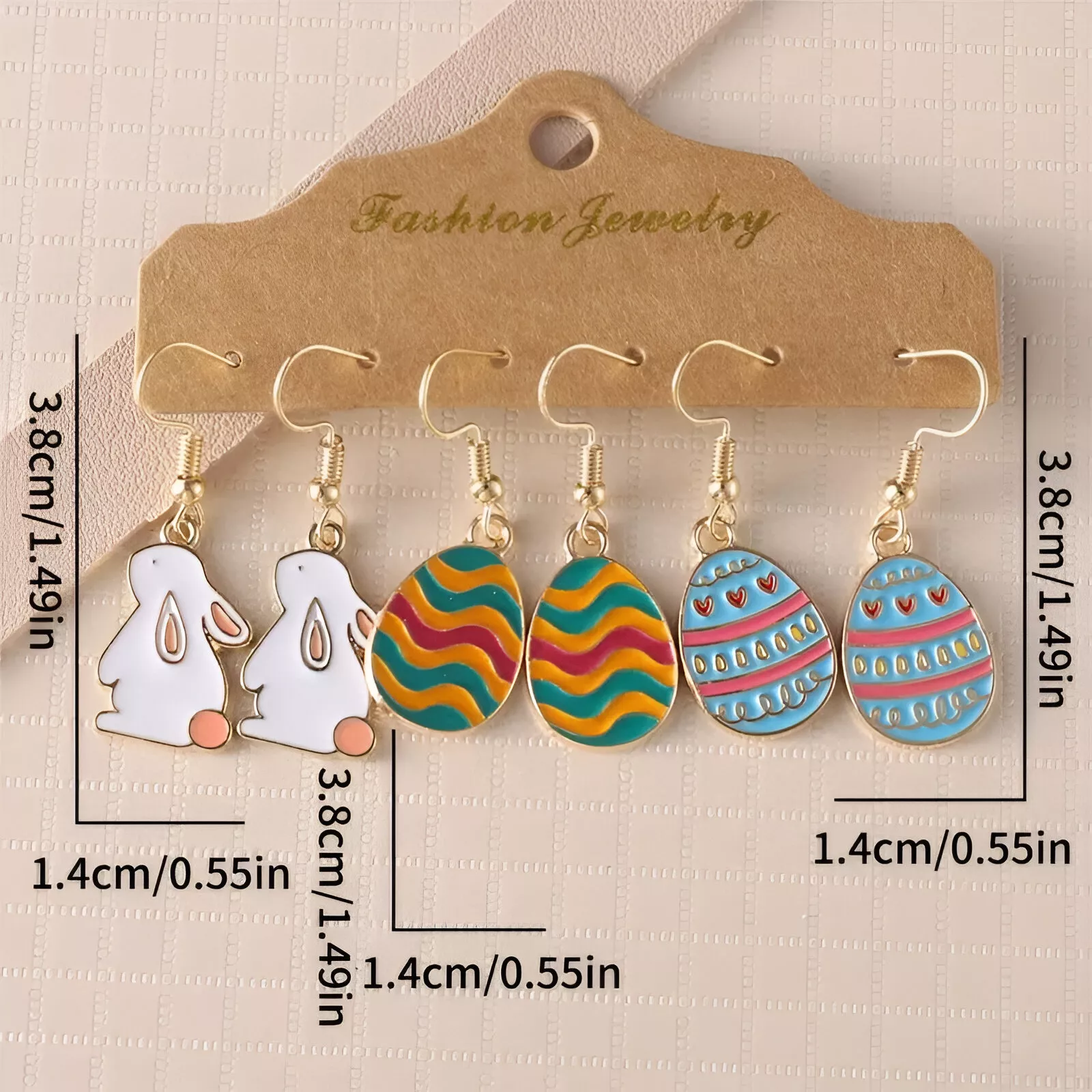 6-Piece Cute Easter Bunny Egg Dangle Earrings Set for Women and Girls