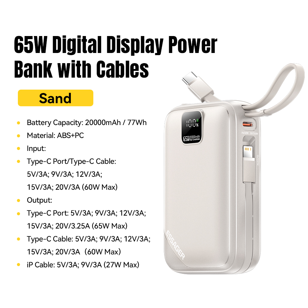 Stay fully charged wherever life takes you with this 65W PD Fast Charging 20000mAh Portable Power Bank. Designed for modern multitaskers and travelers, this high-capacity external battery delivers powerful, reliable energy for your most essential devices — from smartphones and tablets to laptops and even MacBooks. Whether you’re working on the go, exploring the outdoors, or navigating a long commute, you’ll always have the power you need in your pocket.