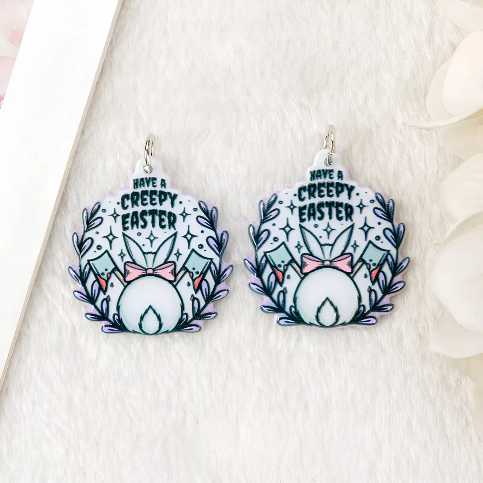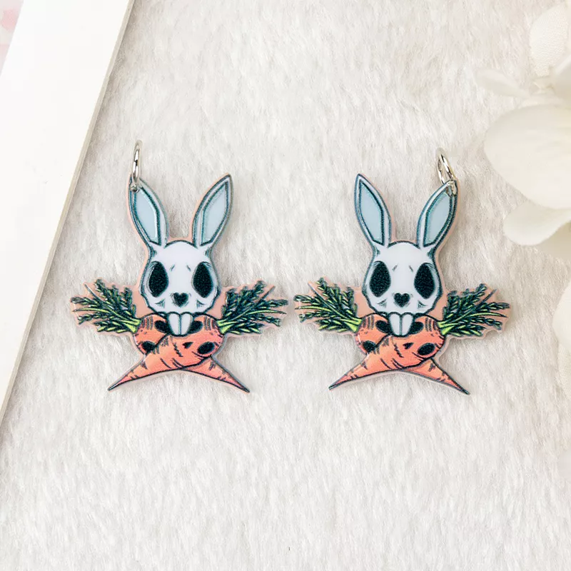 Each charm features a mix of rabbits and Easter eggs with pastel hues and neo-gothic flair—ideal for alternative fashion, holiday-themed projects, or just adding something playfully spooky to your accessory game. Whether you’re making gifts, stocking your small business, or treating yourself to a fun project, these acrylic charms are sure to spark imagination and compliments.