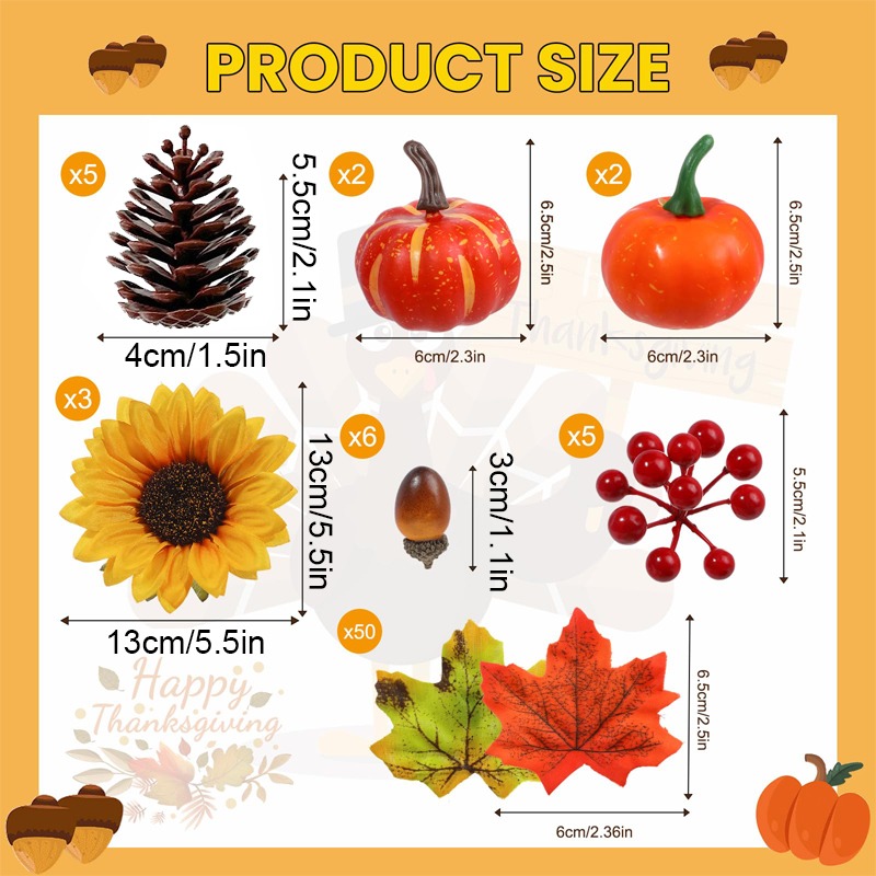 Give your fall festivities a magical touch with our 73PCS Fall Cake Toppers! Perfect for Thanksgiving celebrations and other autumn events, this vibrant set includes charming decorations like artificial pumpkins, cheerful sunflowers, and colorful maple leaves. These delightful cake toppers will elevate your desserts into beautiful centerpieces that will impress your guests and make your gatherings unforgettable!