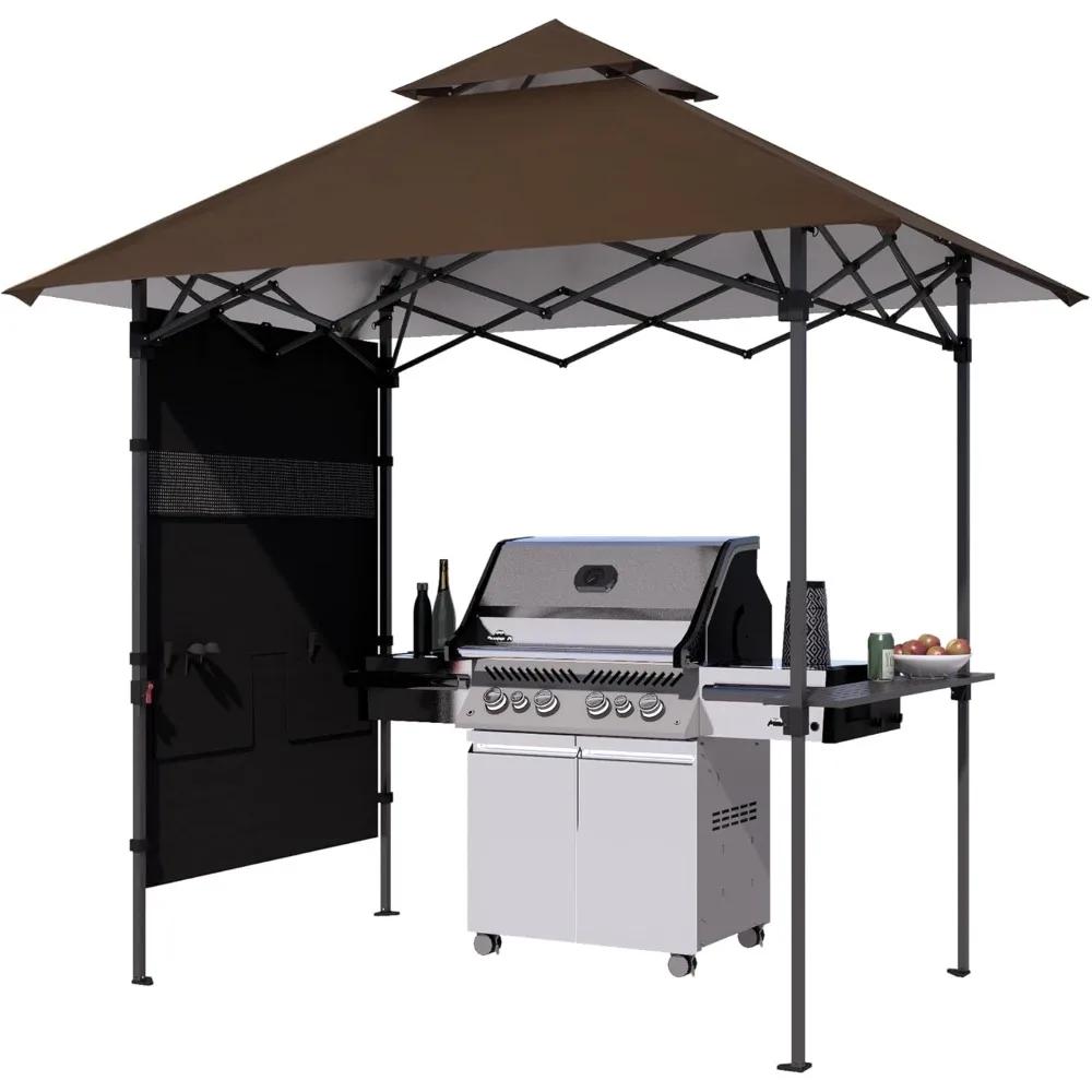 This gazebo stands out for its practical design and versatility. Crafted with high-quality materials, it not only provides coverage but also makes cooking a delightful experience. The combination of a sturdy frame, adjustable heights, and thoughtful features—like the LED lights and shelving—ensures it meets all your outdoor cooking needs. Plus, the modern design is visually appealing, making it an attractive addition to any outdoor space.