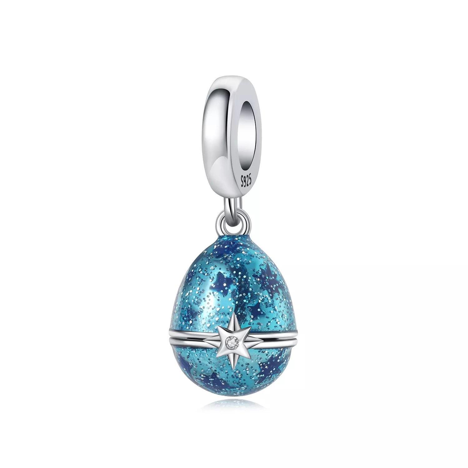 925 Sterling Silver Blue Star Easter Egg Charm for Bracelets & Necklaces
