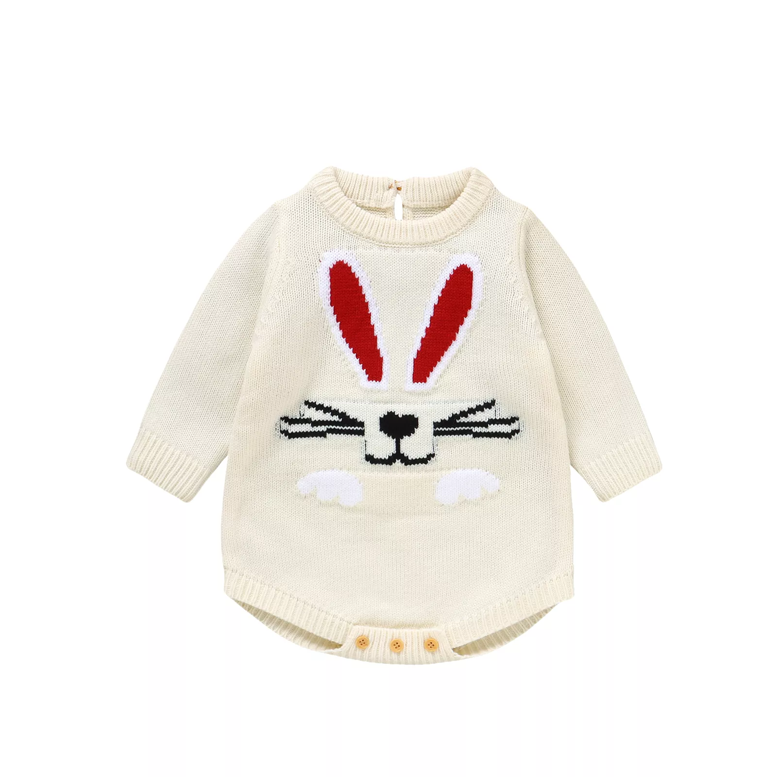 Keep your baby warm and stylish with this adorable knit baby bodysuit! Designed for newborns and infants up to 18 months, this long-sleeve romper is made from soft, breathable acrylic to provide ultimate comfort during cooler seasons. Featuring a cute rabbit design, it’s perfect for autumn days, cozy indoor play, or a festive Easter outfit.