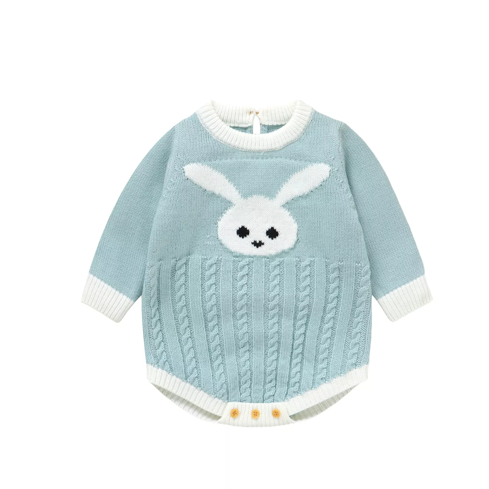 Keep your baby snug and stylish with this adorable knit baby bodysuit! Designed for newborns and toddlers up to 18 months, this long-sleeve romper is crafted from soft, breathable acrylic to ensure maximum comfort. The charming rabbit design adds a playful touch, making it perfect for everyday wear and special occasions like Easter.