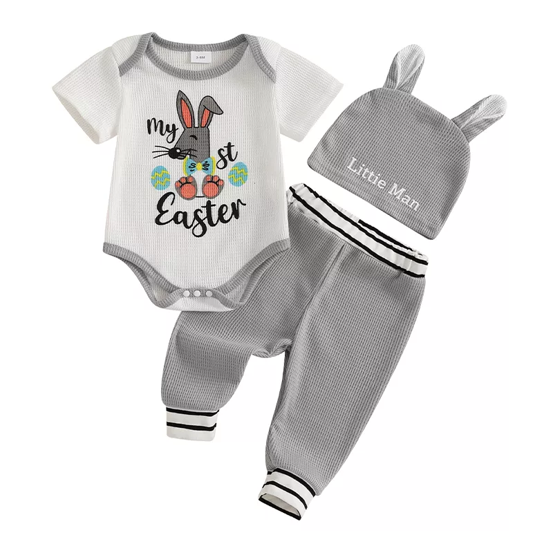 This baby boy 3-piece Easter outfit isn’t just a seasonal essential — it’s a keepsake. Thoughtfully designed with both parents and babies in mind, it combines cheerful style with day-long comfort. From Easter egg hunts to cuddles on the couch, your little one will be the cutest bunny around.
