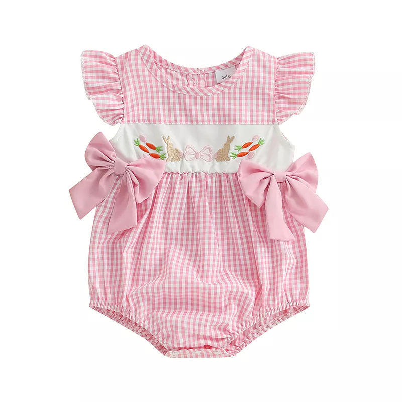 The attention to detail in this romper is what truly sets it apart. From the embroidered bunny and carrot accents to the soft plaid pattern and delicate ruffle sleeves, every element is thoughtfully designed to make your baby the star of the day. Plus, the lightweight feel and practical design mean she’ll not only look cute — she’ll feel great too.