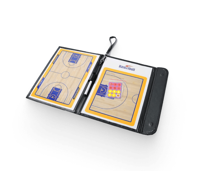 This basketball tactic folder comes with two sets of magnetic markers (red and yellow) allowing you to tweak your team’s strategy during the game.