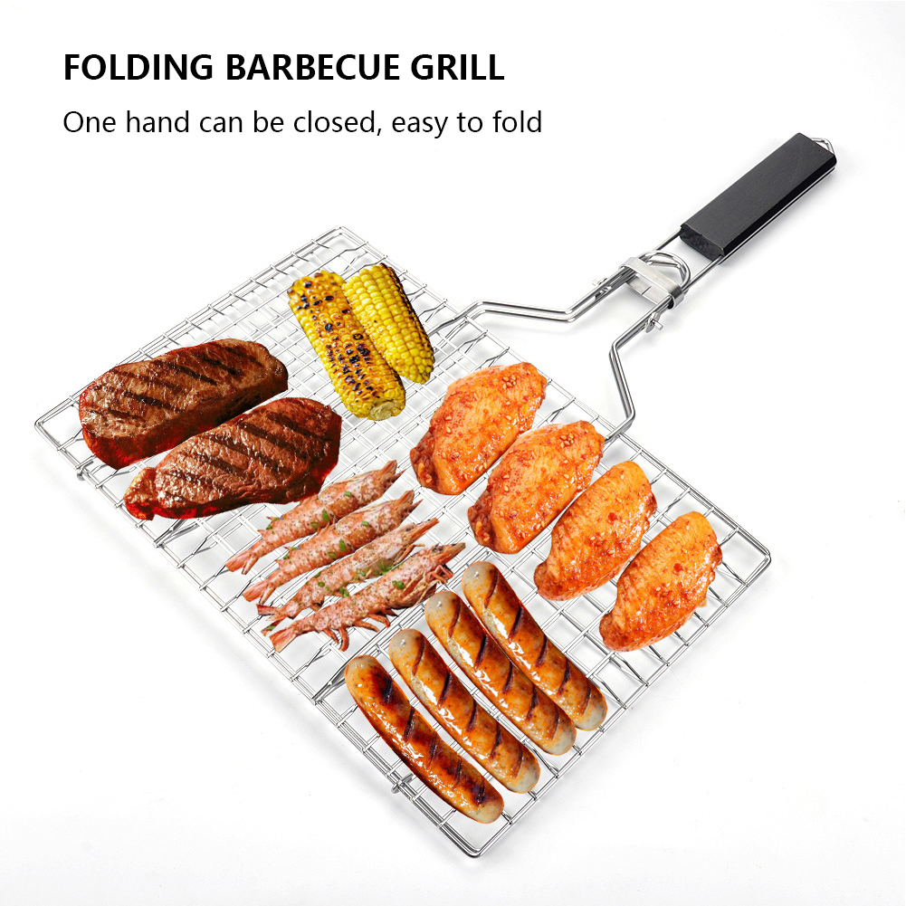 Whether you’re grilling fish, vegetables, shrimp, steaks, or chops, this basket keeps your food secure and evenly cooked. The clever locking system ensures the grid stays in place, while the heat-resistant wooden handle allows safe and comfortable flipping. Its detachable handle adds convenience for transport and compact storage, making it ideal for both indoor and outdoor cooking.