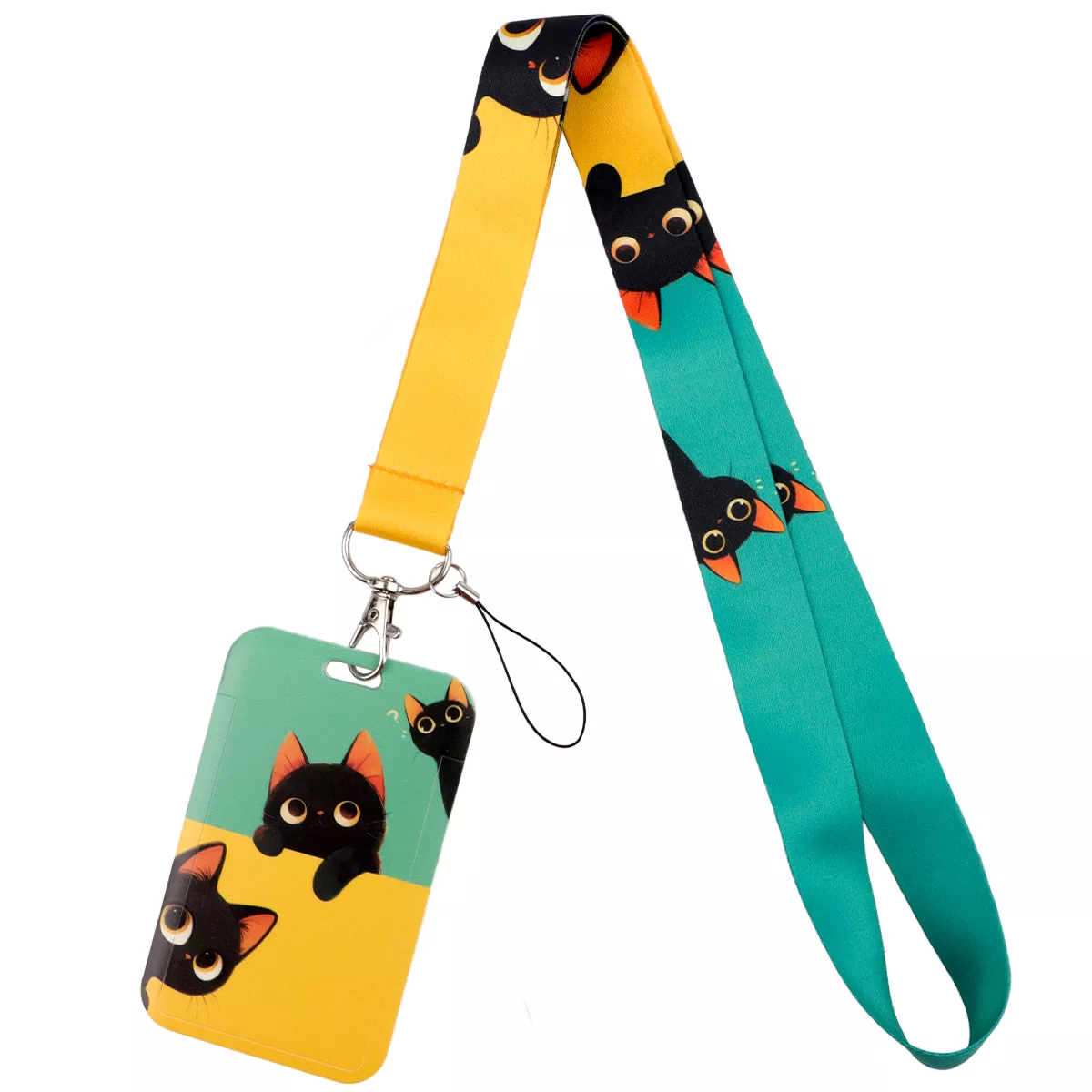 Black Cat Cartoon Neck Strap Lanyard for Keys, ID Cards & Phone Accessories