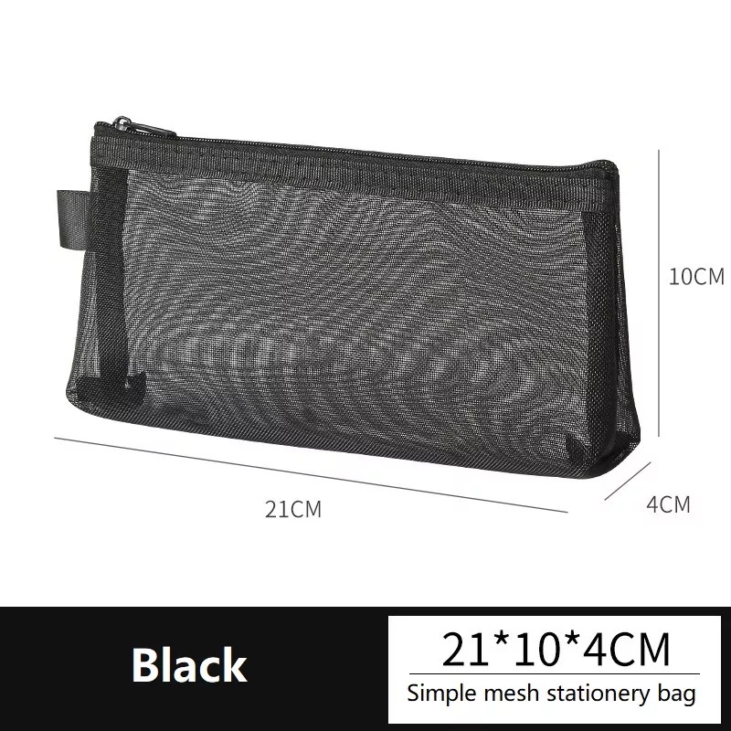Black Mesh Transparent Pencil Case – Stylish Clear Stationery Pouch