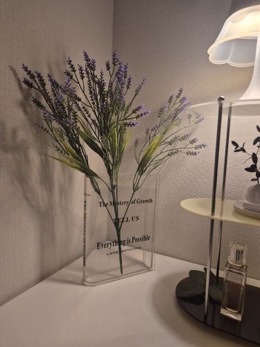 I've always been on the lookout for unique, stylish pieces to add a touch of personality to my home decor. This transparent acrylic book vase has proven to be exactly what I needed. Its distinctive design and modern appeal have truly transformed my living space. The fact that it's made from sturdy acrylic material means I don't have to worry about it breaking orattering - such peace of mind! It fits perfectly on any table desk, thanks to its compact size. And did I mention how versatile this piece is? Whether indoors or outdoors, it adds a chic touch wherever you place it. Plus, the non-slip base ensures stability which is super important for me as someone who likes rearranging furniture quite often!