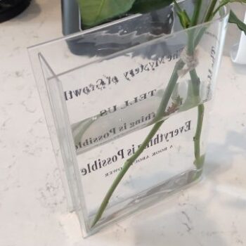 Donโt miss the chance to enhance your home with the Elegant Transparent Acrylic Book Vase. Its unique design, durable construction, and versatile use make it a must-have for any decor enthusiast. Order yours today and start creating beautiful flower arrangements that will impress everyone who sees them.