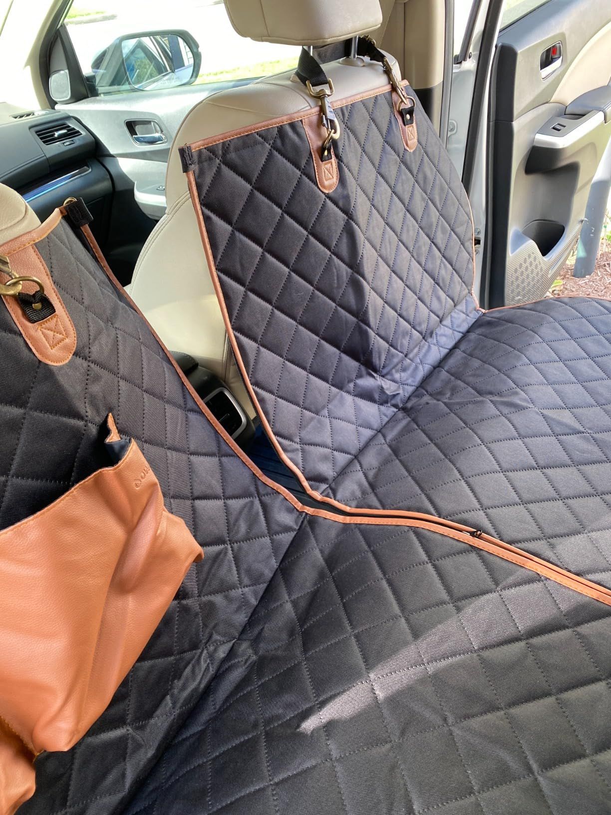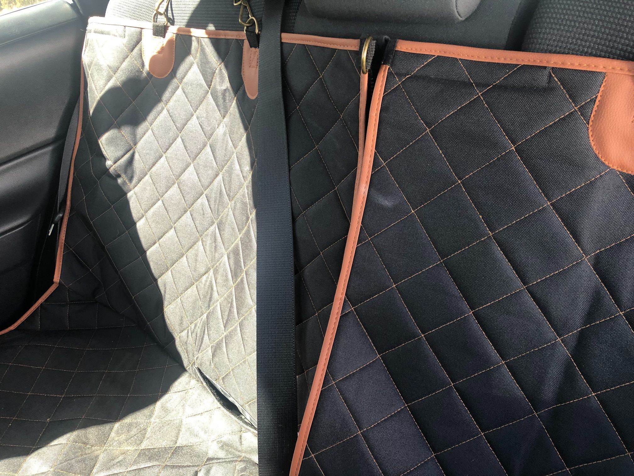This car dog hammock fits most vehicles with detachable headrests. It also features a unique split design – just undo the zipper in the middle to save space and use this dog hammock on one side of the seat. And when not in use, you can easily fold it up and carry conveniently by the handle. Perfect for travel lovers!