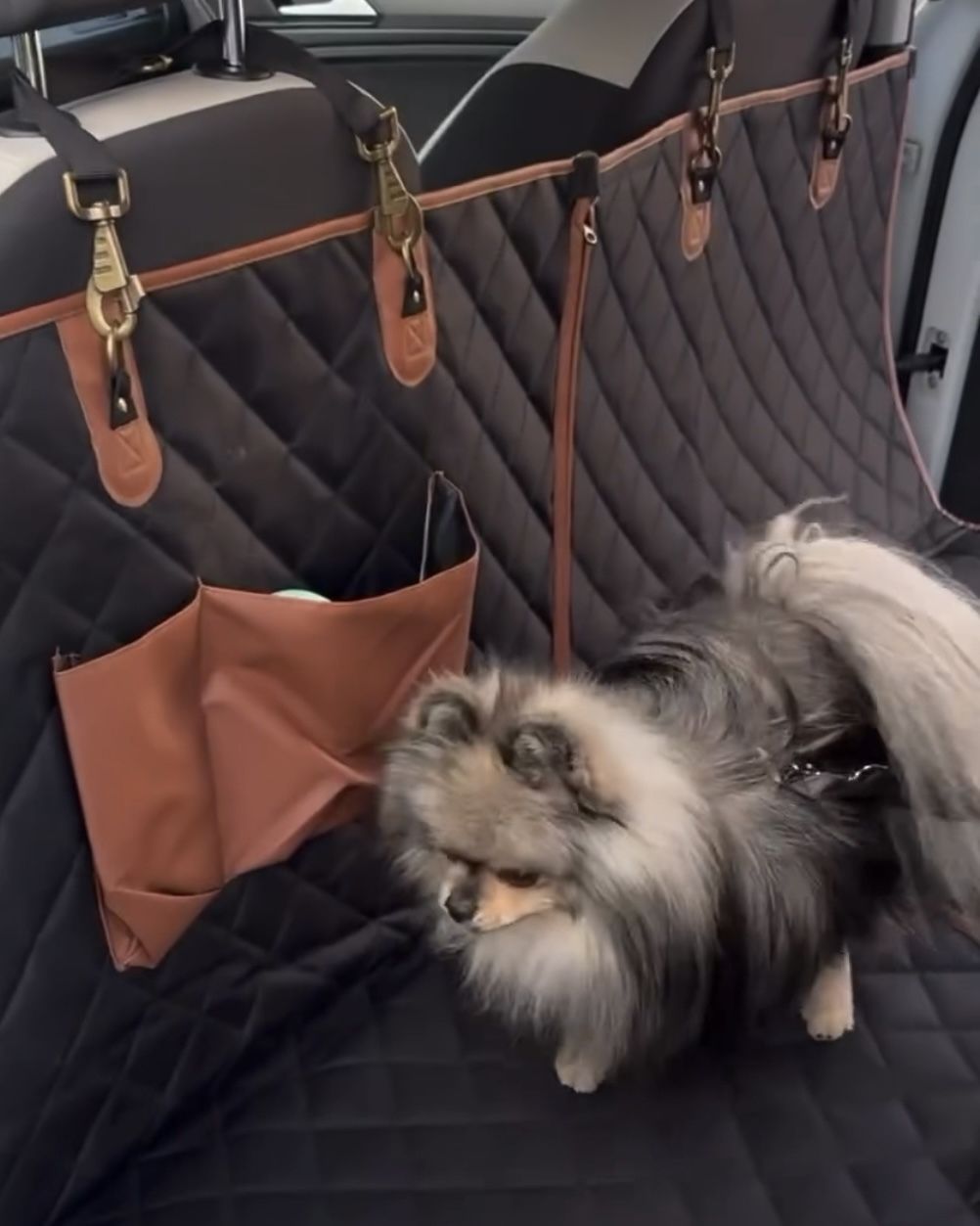 This seat cover features two convenient pockets, providing ample room to store all your pet’s essentials in one organized spot. Whether it’s their favorite toys, treats, leashes, brushes, or travel bowls, these handy pockets ensure everything you need is easily accessible during your trips. It’s a practical solution for keeping your car tidy and ensuring you’re always prepared for your pet’s needs on the go.