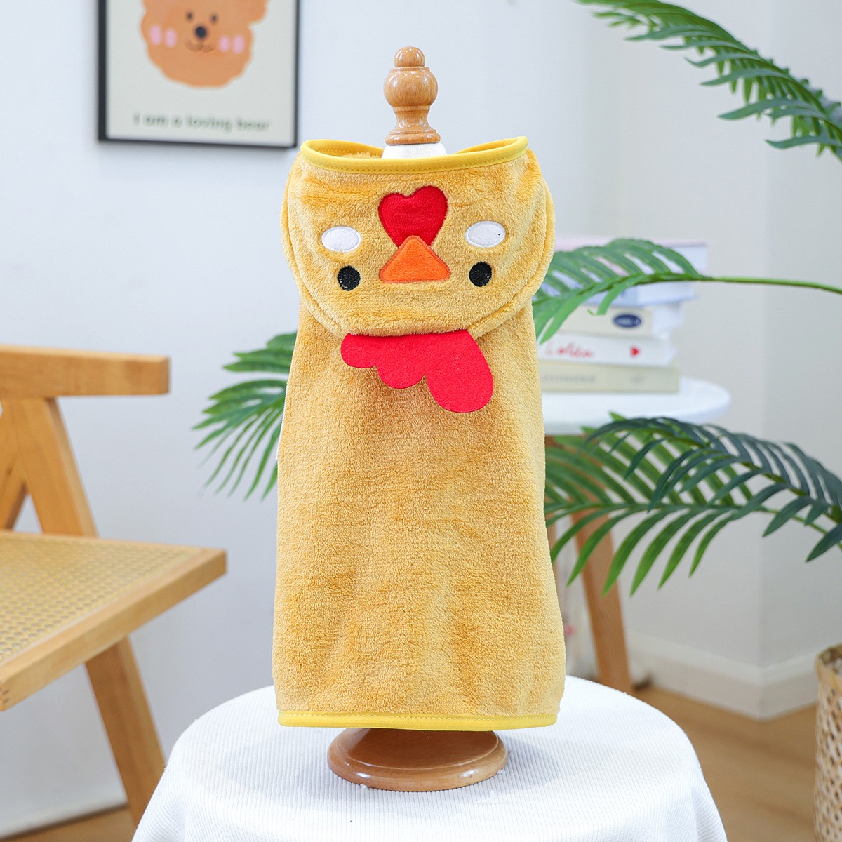 Wrap your furry friend in adorable charm with our Cartoon Chicken Clothes designed for small to medium dogs and even playful cats! This delightful bath towel overall is not just a costume, but a cozy garment that keeps your pet warm during chilly days. Made from soft polyester, this multifunctional puppy cloak is perfect for lounging at home, going for walks, or just snuggling up on the couch!