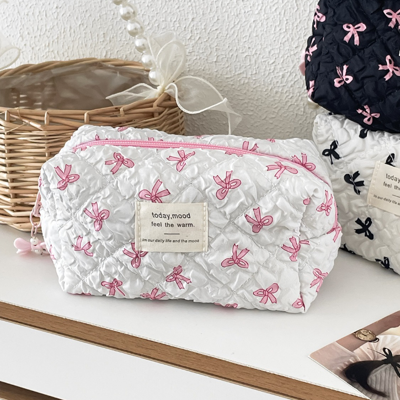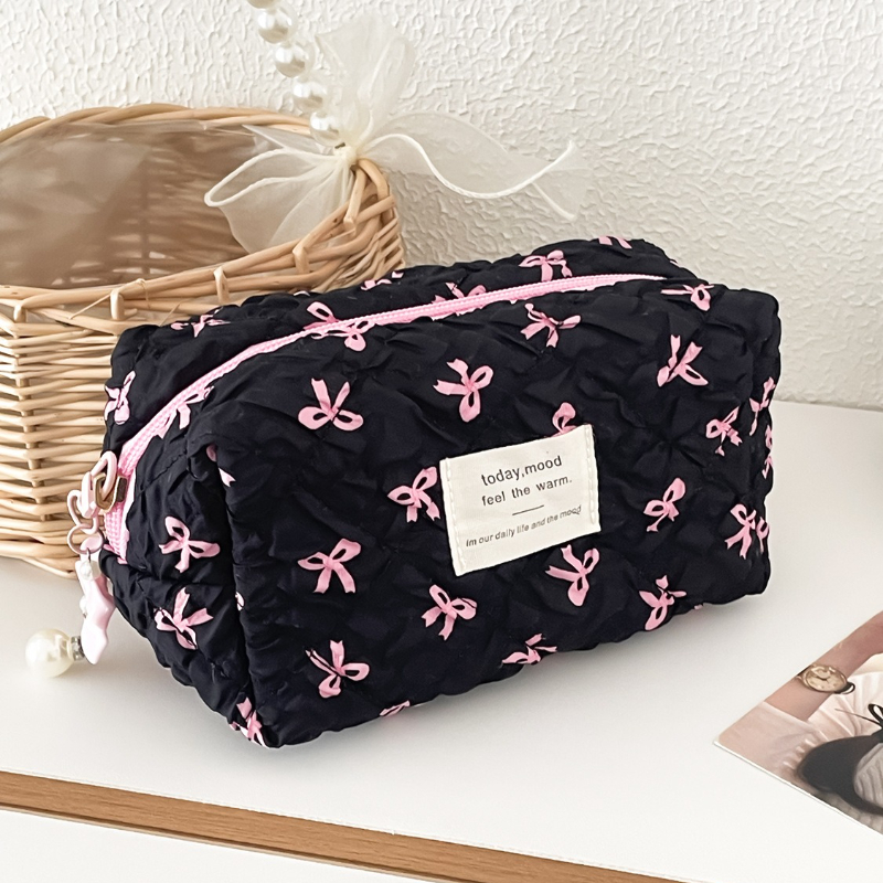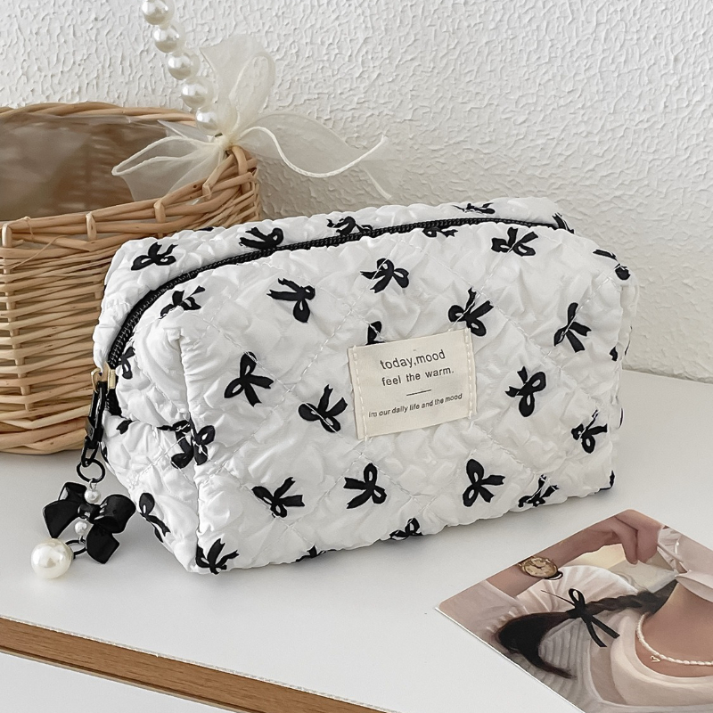 Chic Bow Print Makeup Clutch – Portable Cosmetic & Toiletry Organizer