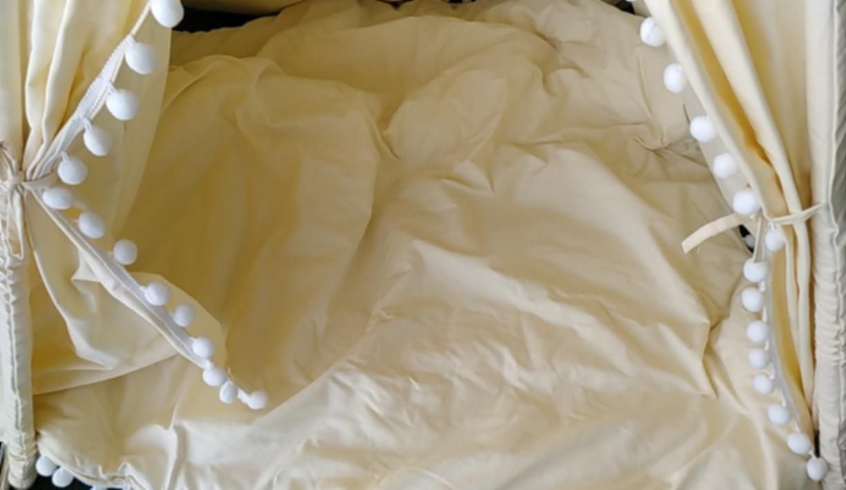 You can remove the poles and machine wash the tent and the included play mat. Make sure to use your washing machine’s settings for cotton.