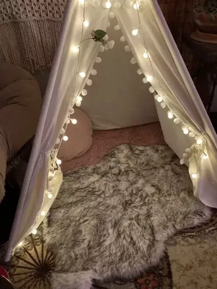 This kids’ teepee tent is versatile and can be set up in your child’s bedroom, the living room, or any convenient corner of your home, creating a cozy and imaginative play space indoors. For outdoor fun, it can also be easily moved to the backyard, providing a comfortable and sheltered spot where your child can enjoy the fresh air. Whether indoors or outdoors, this teepee offers a perfect, adaptable hideaway for playtime and relaxation.