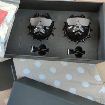Looks very expensive. The magnet is strong. The dog is plastic. Not obsessive, light aroma.