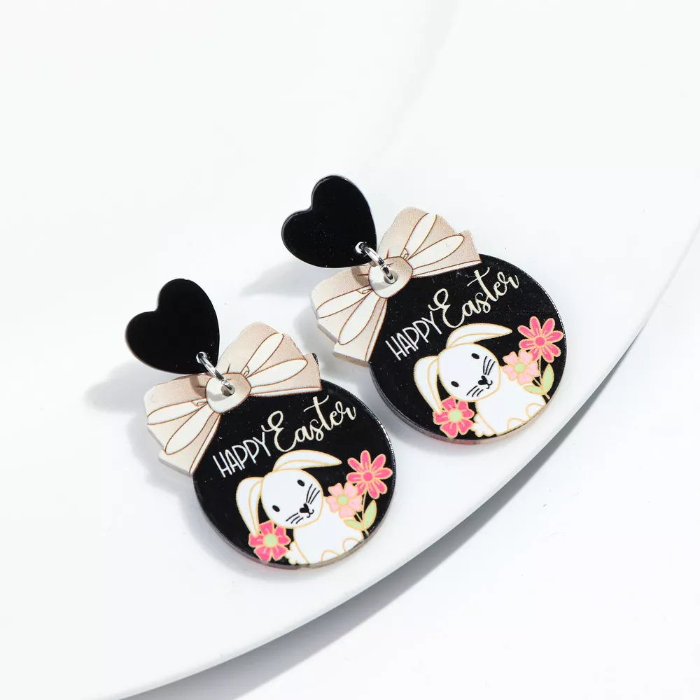 Crafted from lightweight acrylic with a sequin finish, these earrings showcase a whimsical bunny design that’s both eye-catching and lightweight for comfortable wear. At just over 2 inches long, they offer the perfect drop length for a fun statement without overwhelming your look. The zinc alloy hooks provide durability, while the acrylic base ensures the earrings remain featherlight, ideal for all-day wear. With their vibrant colors and playful pattern, these earrings are perfect for spring celebrations, Easter egg hunts, or adding a cheerful touch to your everyday outfit.
