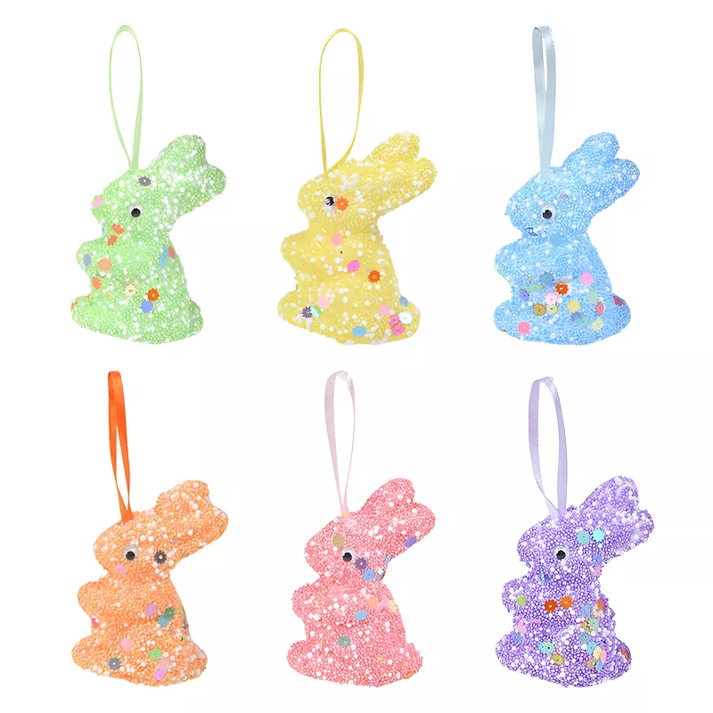 The foam material makes these bunnies easy to handle and hang, perfect for wreaths, Easter baskets, window displays, or as part of a festive table centerpiece. These delightful bunny ornaments are also ideal for gifting as party favors, adding extra fun to Easter egg hunts, or even including in Easter gift baskets. Their lightweight construction and colorful design make them versatile, fun, and easy to incorporate into any Easter or spring-themed decoration.