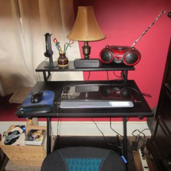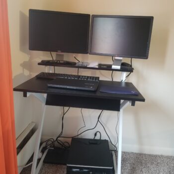 Fits my tiny space perfectly and is very stable. The monitor shelf is a big plus. Great desk!