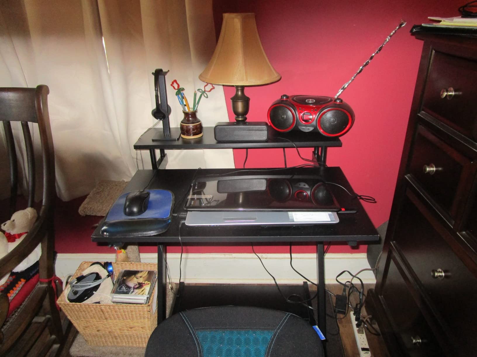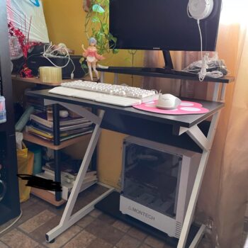 Love this desk! The monitor shelf is a great feature, and it looks sleek in my room. Highly recommend.