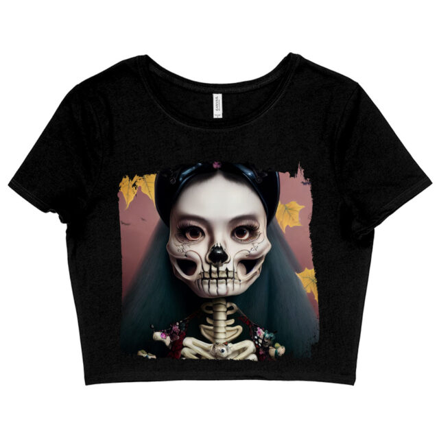 Cool Skeleton Women’s Cropped T-Shirt – Floral Crop Top – Halloween Print Crop Tee Shirt