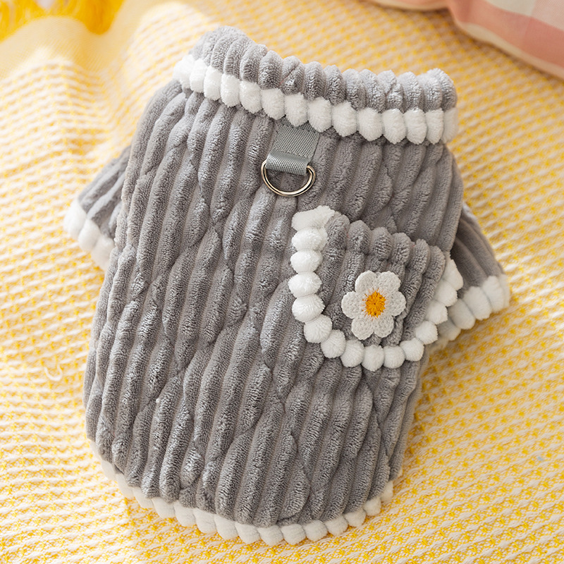 Keep your furry friend cozy and stylish all season long with our Cozy Fleece Teddy Pet Jacket. Designed for both dogs and cats, this adorable four-legged pajama jacket is made with ultra-soft fleece, perfect for chilly autumn strolls and cold winter nights. The sweet small-flower pattern adds a touch of charm, while the functional pockets bring both style and practicality to your pet’s wardrobe.