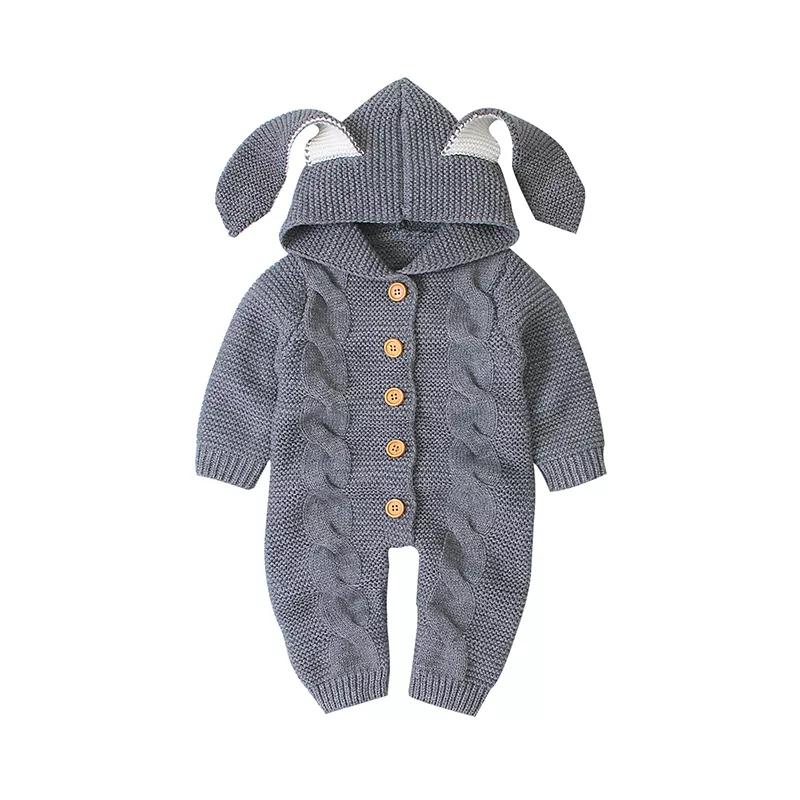 Wrap your baby in warmth and style with this cozy knit baby romper! Designed for infants from 0 to 18 months, this hooded jumpsuit features the cutest little ears, making it an irresistible outfit for your little explorer. Made from soft, breathable acrylic, this romper is gentle on delicate skin while keeping your baby snug during cooler autumn days.