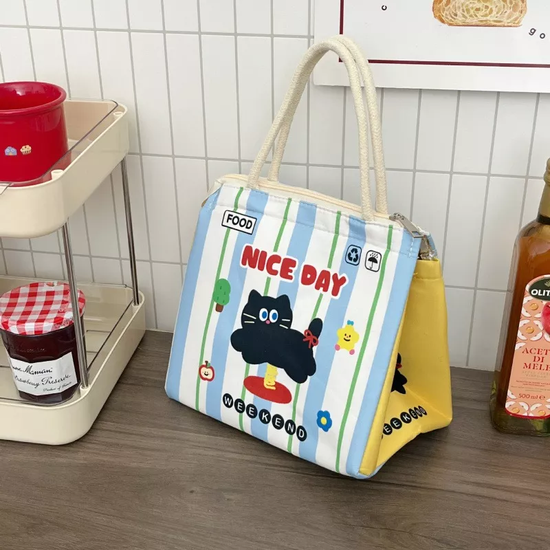 This cute cat insulated lunch bag is the perfect blend of style and functionality. Designed for women, girls, and kids, it’s a must-have accessory for school, work, picnics, or travel. With its charming kawaii cat design and vibrant colors, this bag adds a touch of fun to your daily routine while keeping your meals fresh and organized. Made from durable technology cloth with an aluminum foil lining, it keeps food warm or cool for hours, making it ideal for bento boxes, snacks, and drinks.