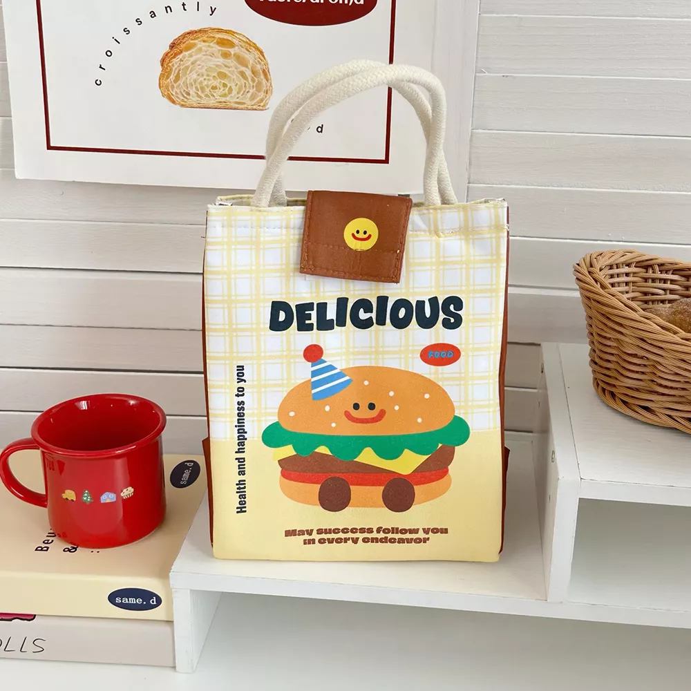 Brighten up your day with this cute and functional lunch bag. Say goodbye to boring lunch boxes and hello to a stylish, practical, and fun way to carry your meals. Add this kawaii insulated tote to your cart now and enjoy fresh, delicious food wherever you go!