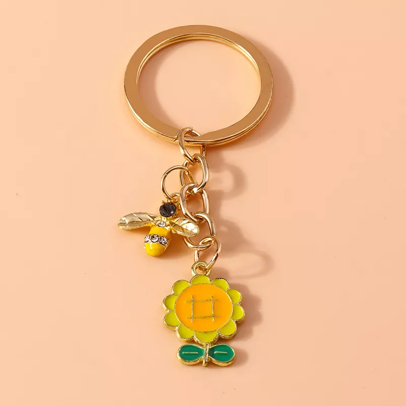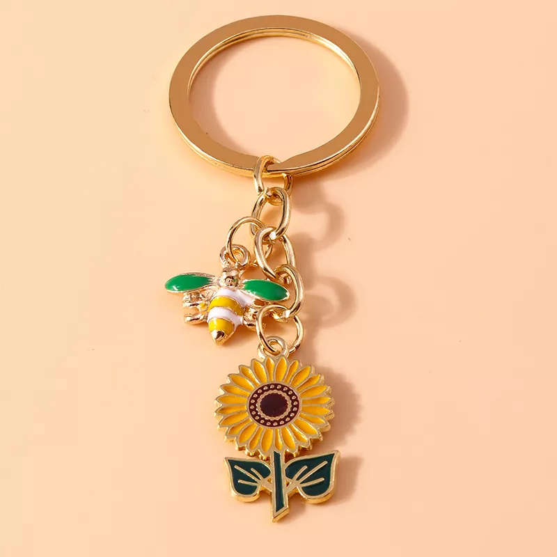 Add a sweet pop of charm to your everyday essentials with this adorable sunflower and bee keychain. Whether you’re clipping it onto your car keys, handbag, backpack, or using it as a DIY jewelry accent, this cute keyring is a cheerful way to express your love for nature and all things whimsical. Designed with a vibrant enamel sunflower and a tiny buzzing bee, this accessory is the perfect mix of fun and romantic style, making it an irresistible little treasure for all ages.
