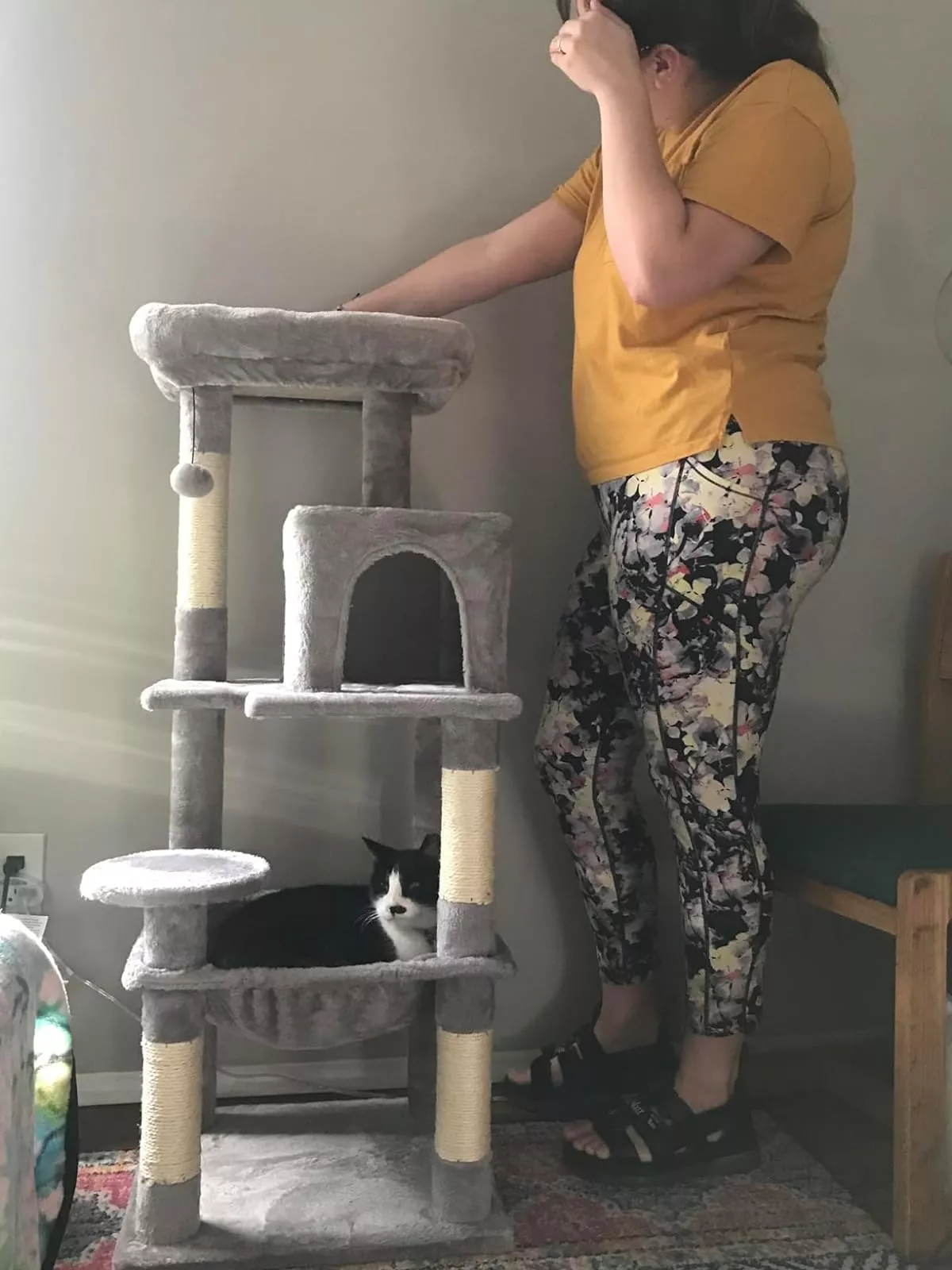 I purchased this for my cat in the hopes that he would sleep on/in it and also use it as a scratching post. After a little exploration (assisted with some cat treats) he likes using it for his daily naps, however he doesn't seem to really like using it as a scratching post at all, so I can't really comment on its lasting power as a scratching post. Putting this together is pretty simple and most of your time will be spent finding and retrieving the specific pieces needed for a piece. Even with my boyfriend assisting this took us about twenty minutes to set up. All of the pieces are included, which was also pretty handy. Overall I'm very pleased with this. My cat is pretty happy with it and it's a big deal for me. I definitely don't regret purchasing this.