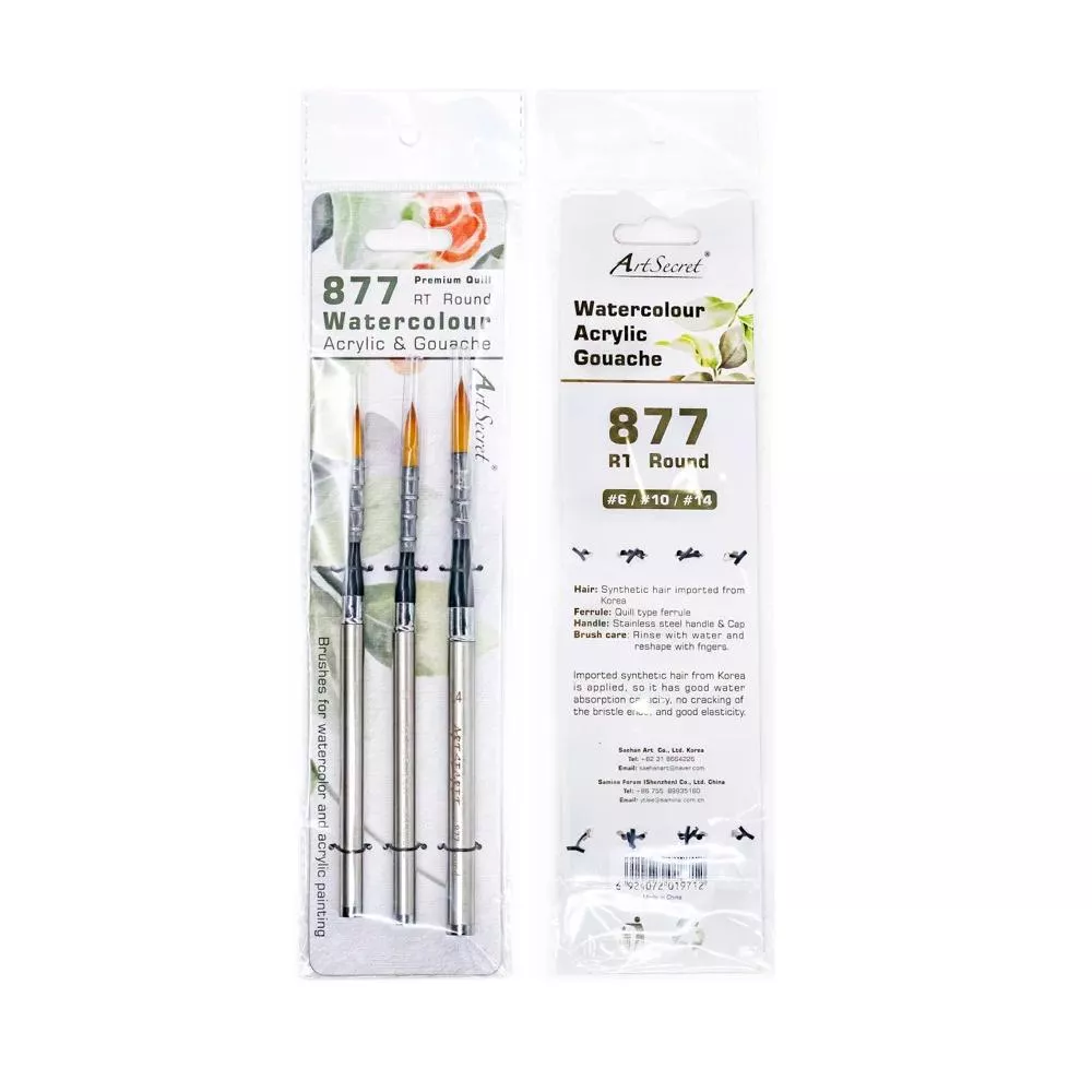 The set includes three essential sizes—#6, #10, and #14—giving you flexibility for fine lines, washes, and detailed work. The round brush heads are ideal for watercolor, acrylic, and even oil painting. Choose from two hair types: golden nylon for smooth, resilient strokes or a premium horse and nylon mix for a natural feel with enhanced water retention. The removable handle design lets you cap the brush when not in use, keeping bristles protected and saving space in your kit or pocket.