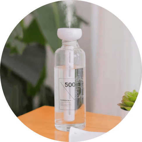 This little water bottle humidifier works really well as long as you aren't expecting it to humidify a large area. It puts a fine mist into the air that keeps my nose from drying out overnight while running a wood stove. It comes with a couple extra filters and fits into a basic size plastic water bottle. Has a mini usb for power.