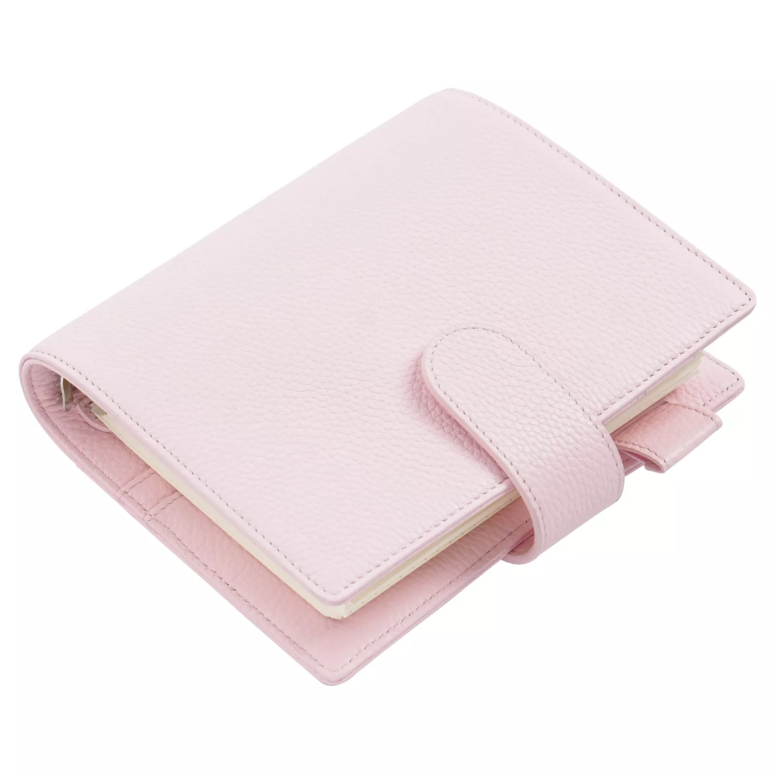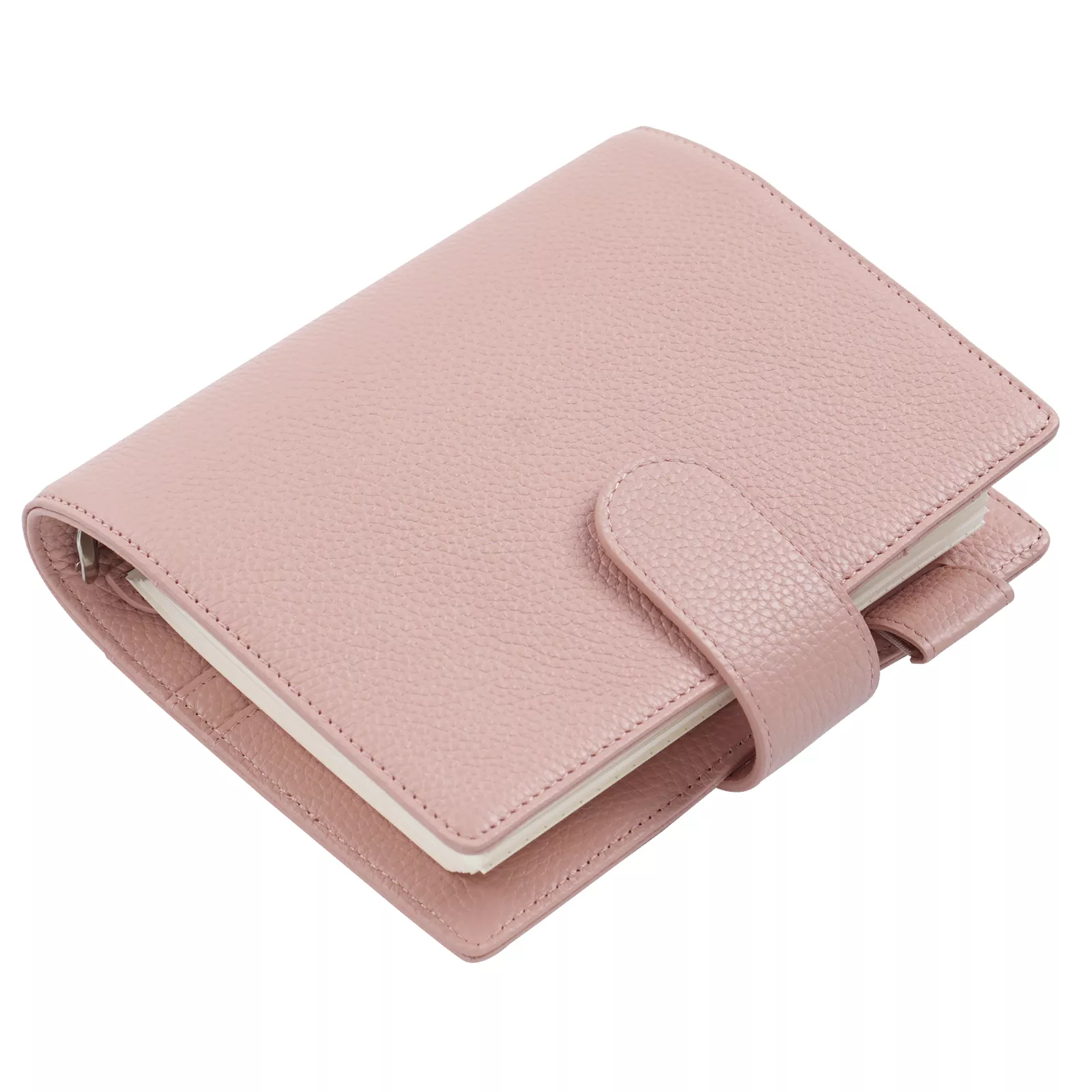 The planner features a practical layout to keep your essentials organized. It includes four card pockets and a slip pocket on the left side, along with a secretarial flap pocket, an additional slip pocket, and an outward elastic pen loop on the right. The fixed rings protector prevents marks from the rings, and the side pocket on the back allows for quick storage of notes or receipts.